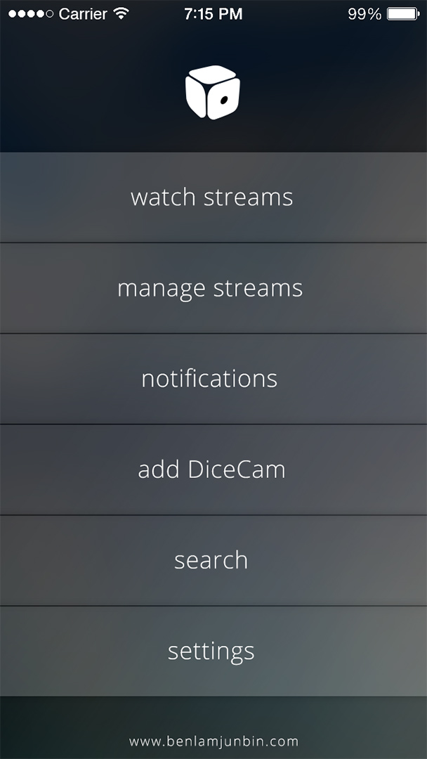 DiceCam, or Dice, proposed by Ben Sigman, is a live streaming app plus portable camera that looks like a 'dice', allowing user to broadcast & watch live streaming anytime, anywhere.